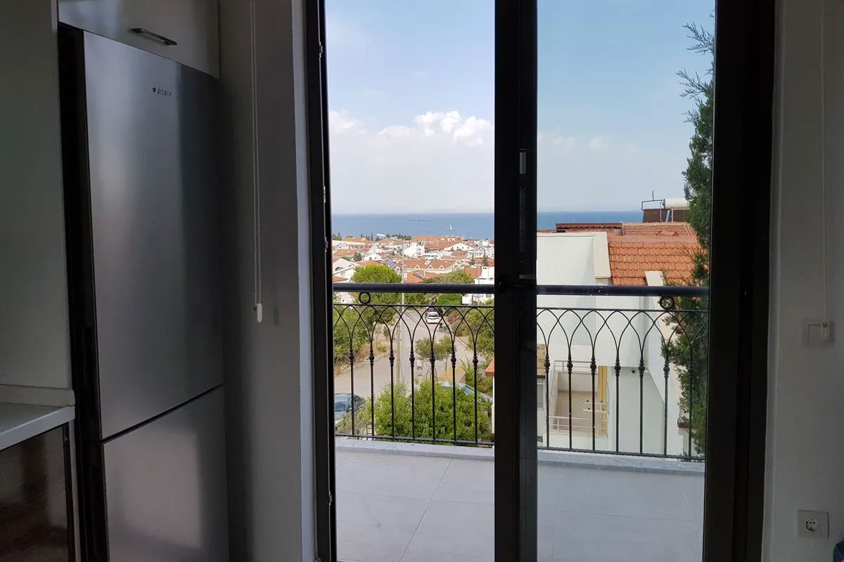Şehir merkezinden 300 m bir uzaklığa sahip sakin bir yerdir denize, merkeze, bankalara, restoranlara yürüme 10 dk mesafede yer almaktadır. Dairelerimiz 2 tane 1+1 – 2 tane 2+1 bahçe katı ve 2 tane 2+1 loft (dublex) tir. Daireler Deniz manzaralı olup çift balkon vardır. Isıtma ve soğutma olarak dairede çift klima bulunmaktadır. Ayrıca evinizin konforunda dizayn edilmiştir. İçerisinde Çamaşır makinesi, bulaşık makinesi, buzdolabı, TV, ütü, ütü masası, fön makinesi, çocuk yatağı, mama sandalyesi, mutfak gereçleri mevcuttur. salon oturma grubumuz açılıp yatak olabilen bir yapıya sahiptir.”
